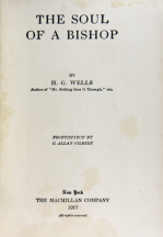 Macmillan, New York, 1917. FIRST AMERICAN EDITION, FIRST PRINTING. Very Good. 8vo. Hardcover, no dust jacket. [VIII], 341, Advertisement:[XI]p. Color frontispiece by C. Allan Gilbert. Stated: "Set up and electrotyped. Published, September, 1917." on the copyright page. Clean red cloth boards with bright gilt lettering on cover and spine. Slight shelf wear. Couple of tiny dents and scratches on the spine and back panel. Binding is tight & square. *** H.G. Wells known, along with Jules Verne, as one of the 19th-century fathers of logical, rational science fiction, but in this 1917 novel, H. G. Wells weaves a more intuitive tale, about a bishop haunted by strange dreams and visions that challenge his faith. Lyrical, poetic, and verging on stream-of-consciousness in places, this little-read work of one of the most enduringly popular writers of modern literature is like found treasure, offering a captivating and unexpected insight into Wells' psyche.